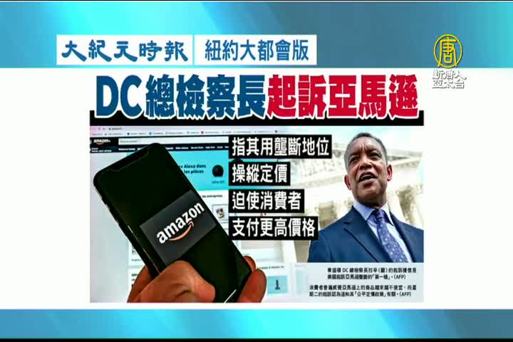 【新唐人亞太台 2021 年 05 月 27 日訊】接著看到大紀元時報紐約大都會版報導:華盛頓特區總檢察長起訴亞馬遜,指其用壟斷地位,操縱定價,迫使消費者支付更高價格。
