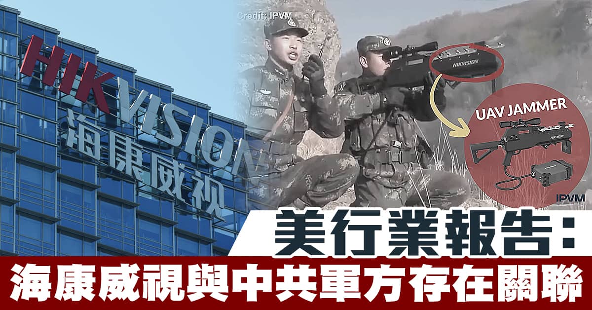 IPVM根據公開資料發現,海康威視2014年就被認為是中共軍隊的頂級供應商,2019年海康威視將無人機出售給中共空軍。今年3月,中共官媒播出一名軍人持有1架無人機干擾槍,槍身上有海康威視的商標。