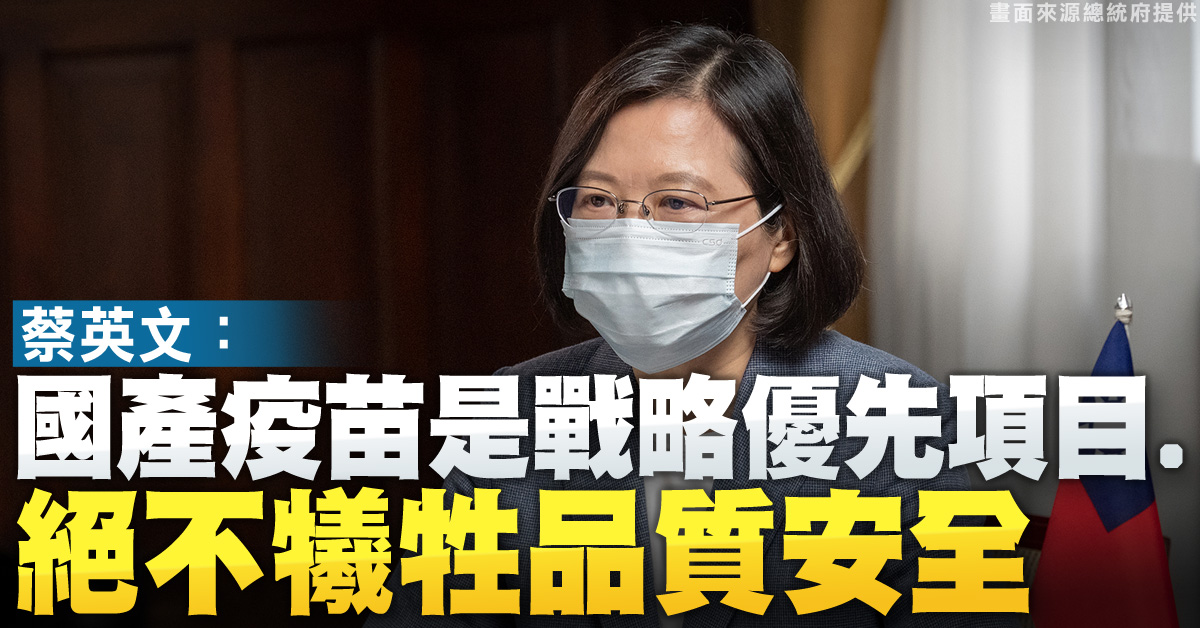 蔡英文:國產疫苗是戰略優先項目.絕不犧牲品質安全