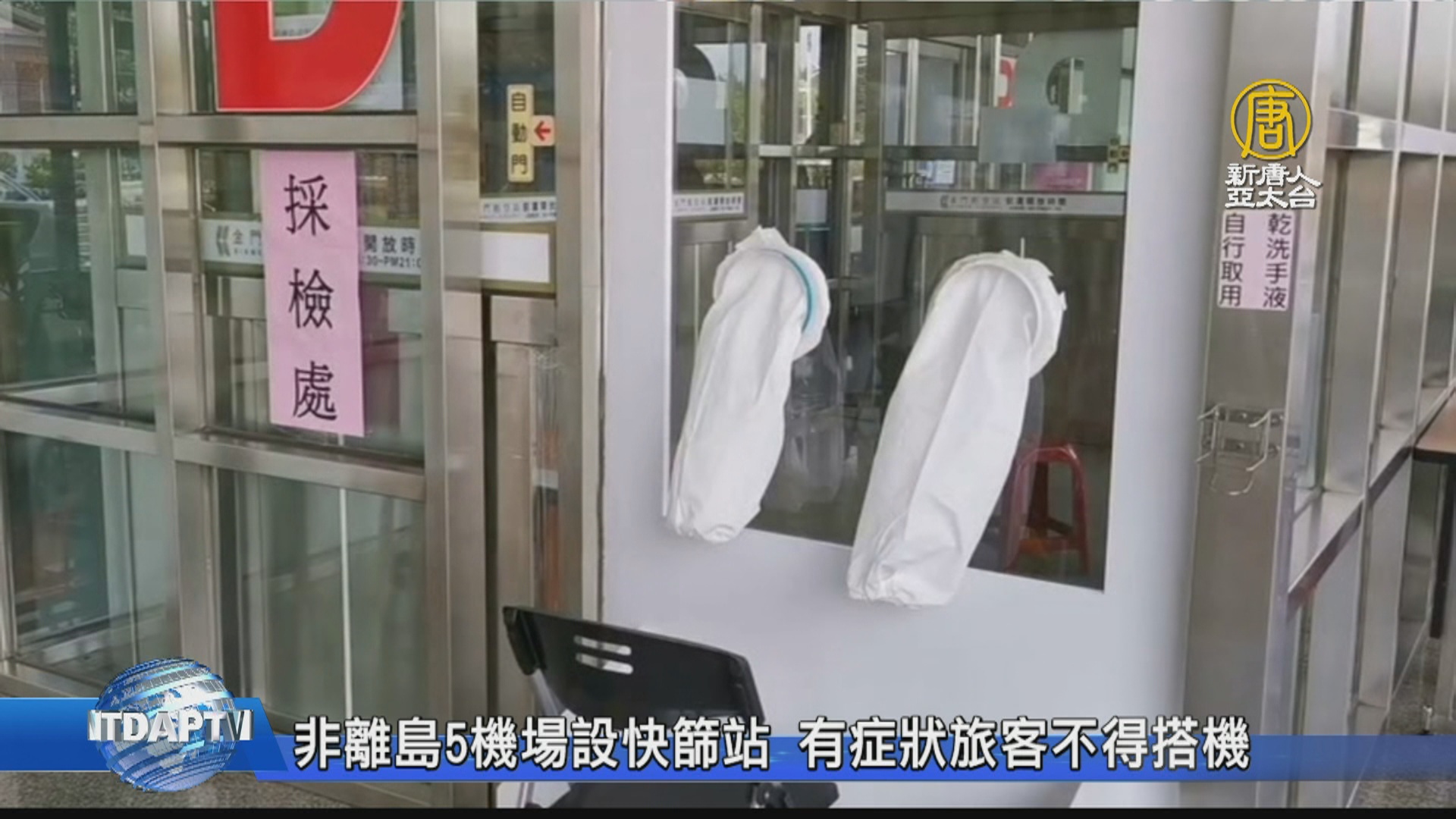 【新唐人亞太台 2021 年 05 月 31 日訊】為了確保離島醫療量能及航空器防疫安全,指揮中心今(31日)宣布,交通部所屬5航空站將設立篩檢站,呼籲有症狀的旅客不要前往搭機。
