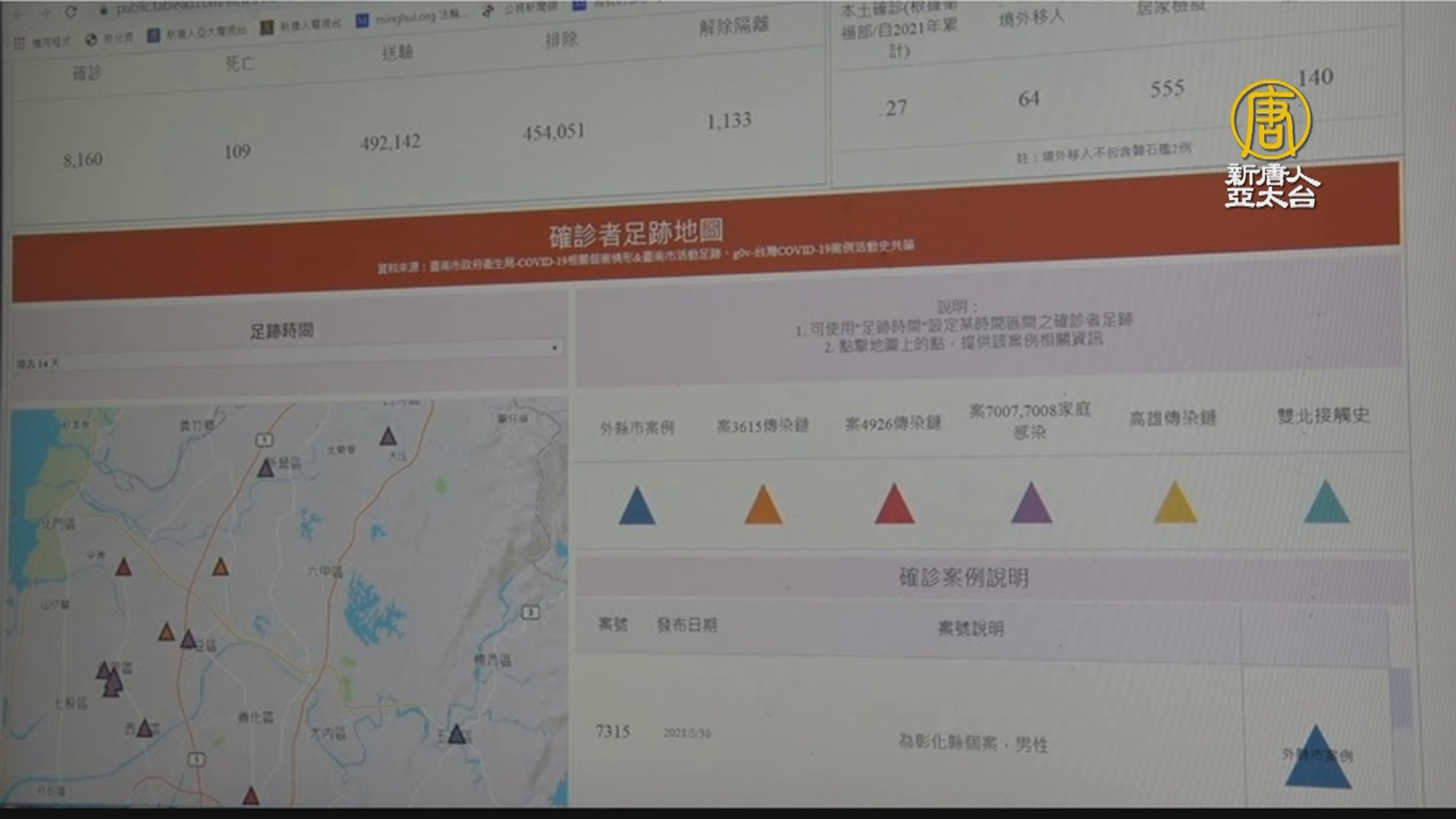 【新唐人亞太台 2021 年 05 月 31 日訊】為了讓民眾正確掌握台南市的疫情及防疫狀況,台南市政府推出COVID-19疫情儀表板。顯示每天疫情的狀況、確診者足跡及疫苗、篩檢站資訊等,都一目了然。