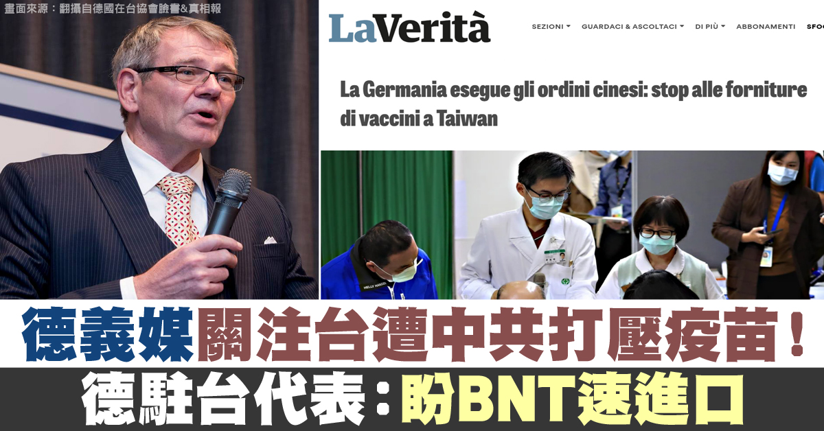 德義媒關注台遭中共打壓疫苗!德駐台代表:盼BNT速進口