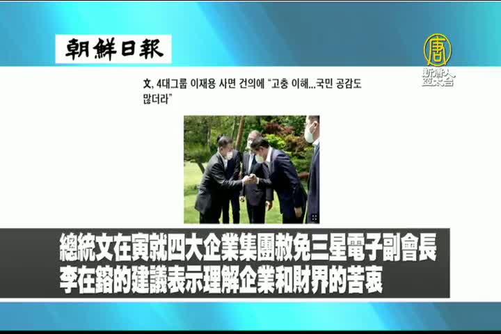 【新唐人亞太台 2021 年 06 月 03 日訊】來看到韓國朝鮮日報報導:總統文在寅就四大企業集團赦免三星電子副會長李在鎔的建議表示,理解企業和財界的苦衷。