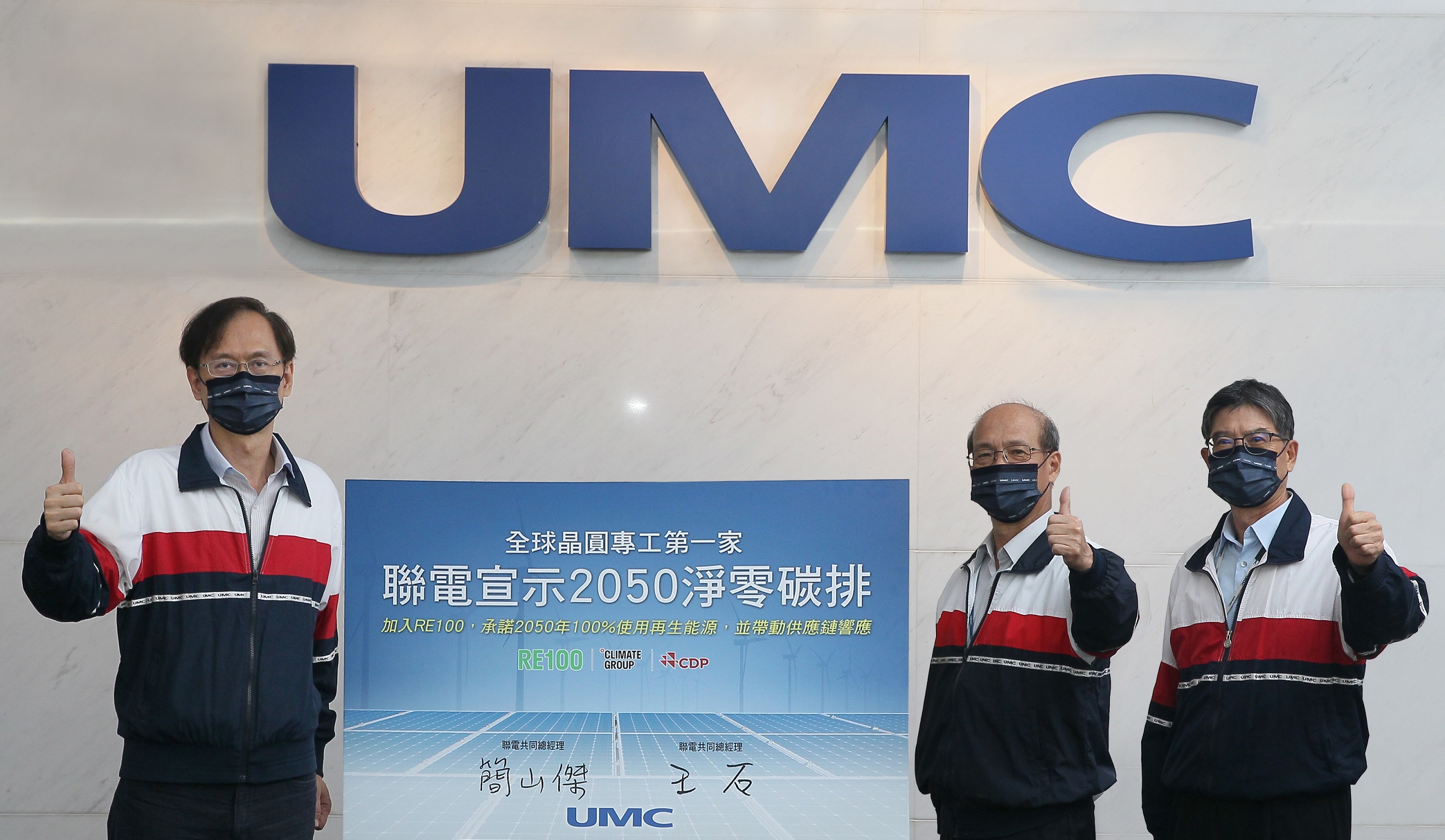 聯華電子宣示於2050年達成淨零碳排,為全球晶圓專工首家承諾淨零,聯電加入RE100並獲供應鏈響應。(聯華電子 提供)