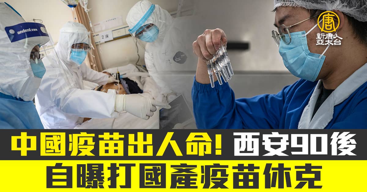 【新唐人亞太台 2021 年 06 月 03 日訊】中國國產疫苗,持續有接種後死亡的案例出現。最近,陝西一名25歲女孩接種完國產中共病毒疫苗後休克送醫搶救,隔天心臟衰竭,放棄治療,疑似去世。上海也有一名28歲男子打完國產疫苗死亡,但當局封鎖消息。6月1號,河北疾控中心的一名工作人員向外媒披露,河北的一位市民,在接種疫苗5分鐘之內死亡。