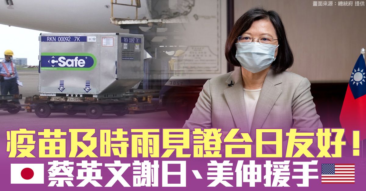 台灣疫情升溫之際,日本政府捐助疫苗,再次見證台日友好,總統蔡英文表達感謝。