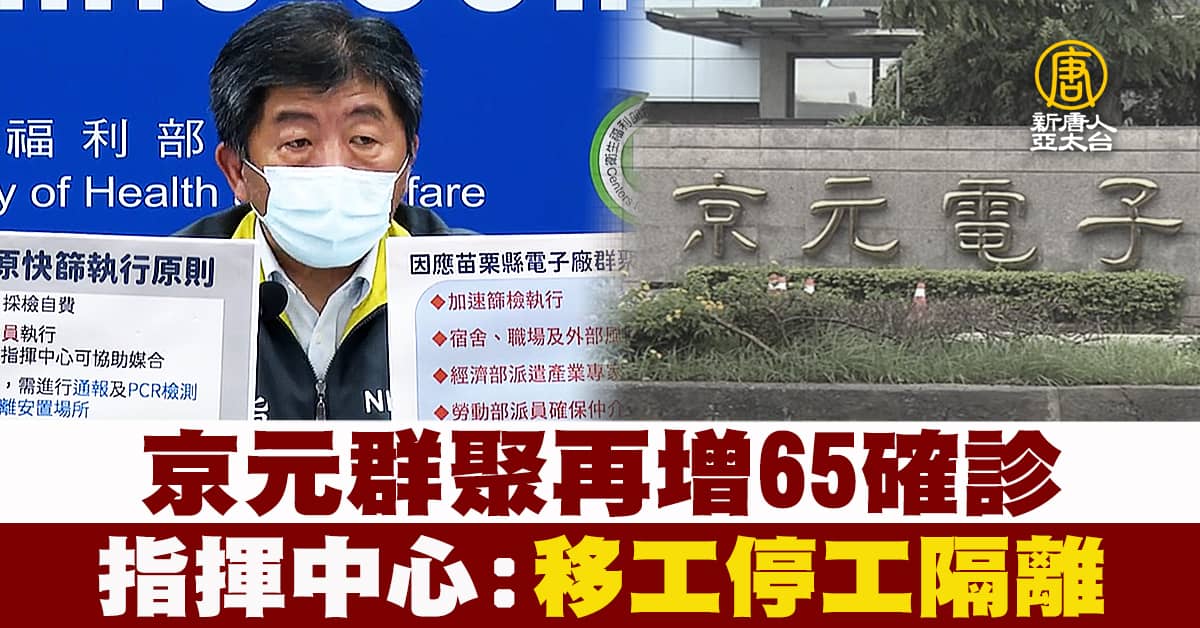 【新唐人亞太台 2021 年 06 月 06 日訊】苗栗竹南京元電子爆發移工群聚,6號再新增65人確診、另一家智邦也有10人確診,多數為外籍移工。指揮中心針對京元群聚案,要求所有外籍移工停止上班,居家隔離,薪資照付,而高風險區移工則全數轉移到外縣市集中檢疫所。