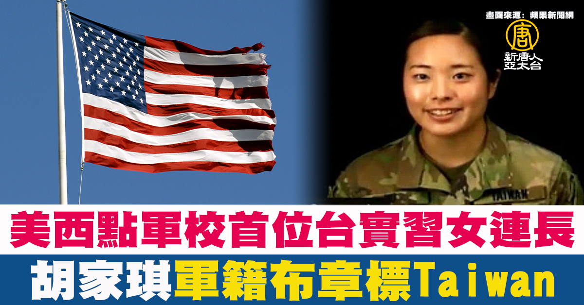 【新唐人亞太台 2021 年 06 月 08 日訊】台灣陸軍官校學生胡家琪,現就讀美國西點軍校升四年級,是台灣赴西點軍校的第三名女性官校生。今年夏季新生入伍訓的「野獸營」中,胡家琪擔任實習連長,是台灣首位出任這項職務的台籍西點生。胡家琪還在說明影片中,在迷彩服上的左胸軍籍布章標示「TAIWAN」,而在右臂上佩掛青天白日滿地紅的「中華民國國旗」布章。