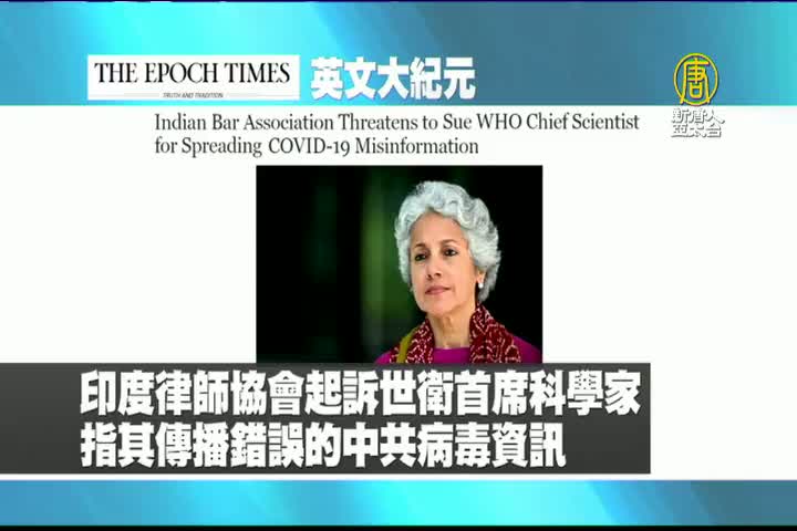 【新唐人亞太台 2021 年 06 月 09 日訊】首先來看到美國大紀元英文版報導:印度律師協會起訴世衛首席科學家,指其傳播錯誤的中共病毒資訊。