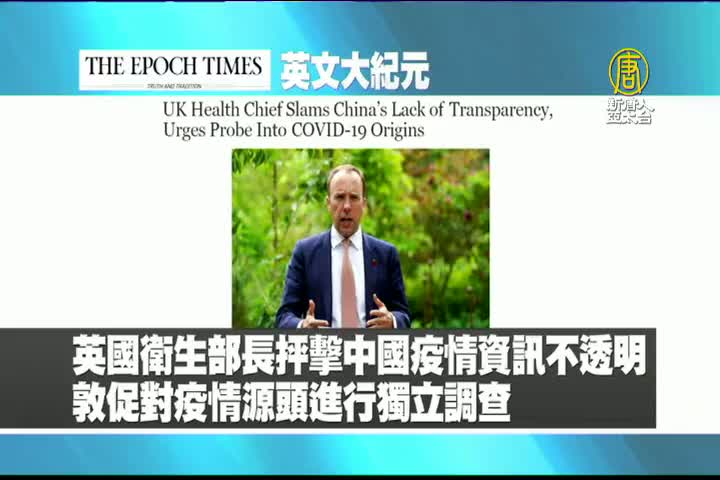 【新唐人亞太台 2021 年 06 月 11 日訊】首先來看到美國大紀元英文版報導:英國衛生部長抨擊中國疫情不透明,敦促對疫情源頭進行獨立調查。