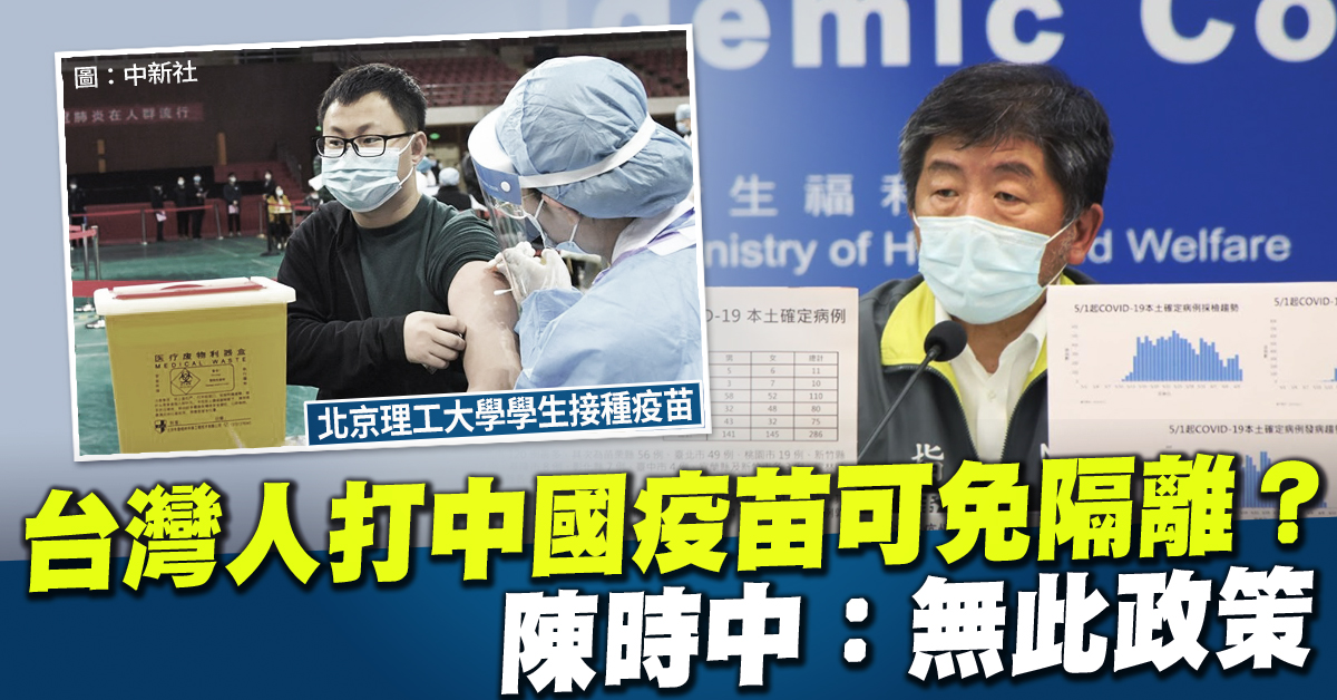 台灣人打中國疫苗可免隔離?陳時中:無此政策