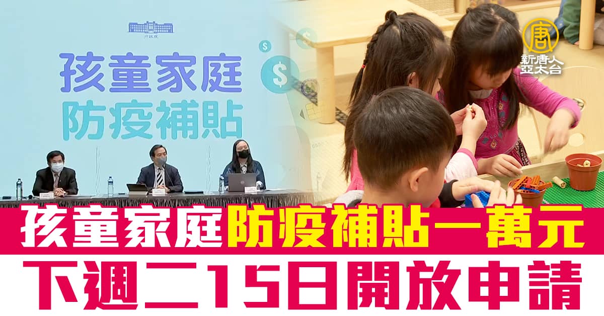 【新唐人亞太台 2021 年 06 月 11 日訊】政府推動紓困4.0,正式公布孩童家庭補貼申請辦法,對象是國小以下孩童,以及國中、高中(含五專前3年)的身心障礙學生,每一學童可由家長請領獲得現金一萬元,將在下週二(15日)1開放網路申請。