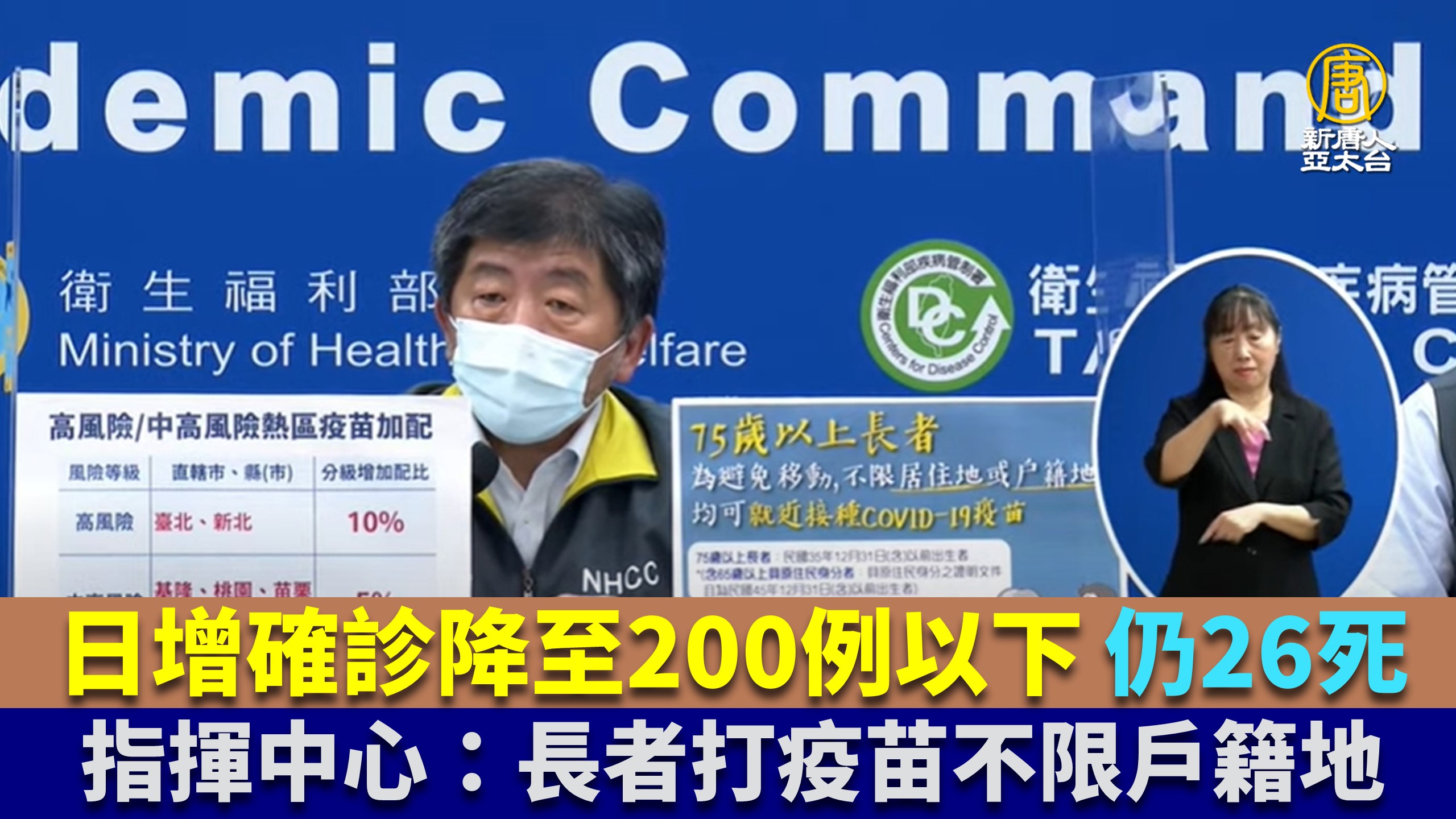 日增確診降至200例以下、仍26死 指揮中心:長者打疫苗不限戶籍地