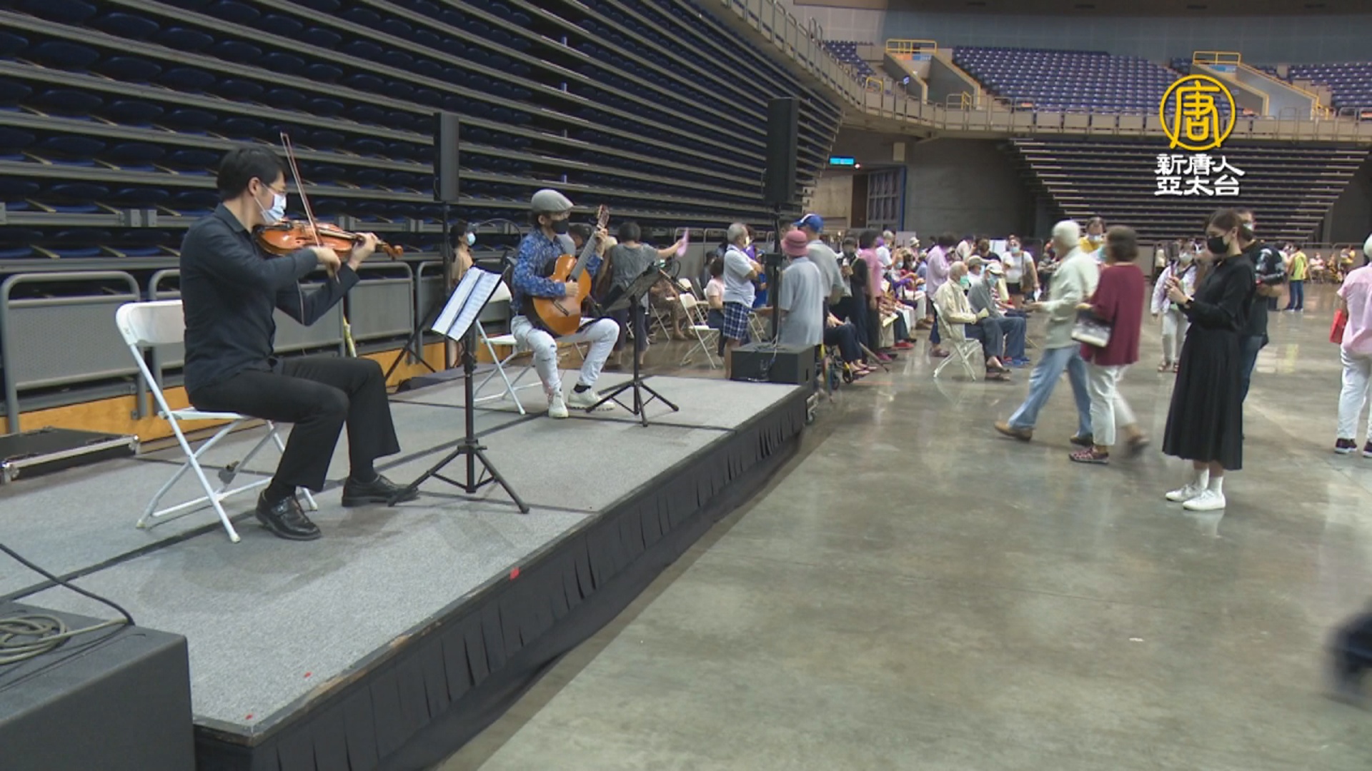 綠島小夜曲,黃昏的故鄉,一首首膾炙人口的樂曲,別以為是在開音樂會,其實是兩位高雄在地的音樂家蔡世鴻和蔡宗言老師,發心為在高雄巨蛋接種疫苗的長輩現場演出,希望能舒緩施打長輩及陪同家屬等待接種的心情。