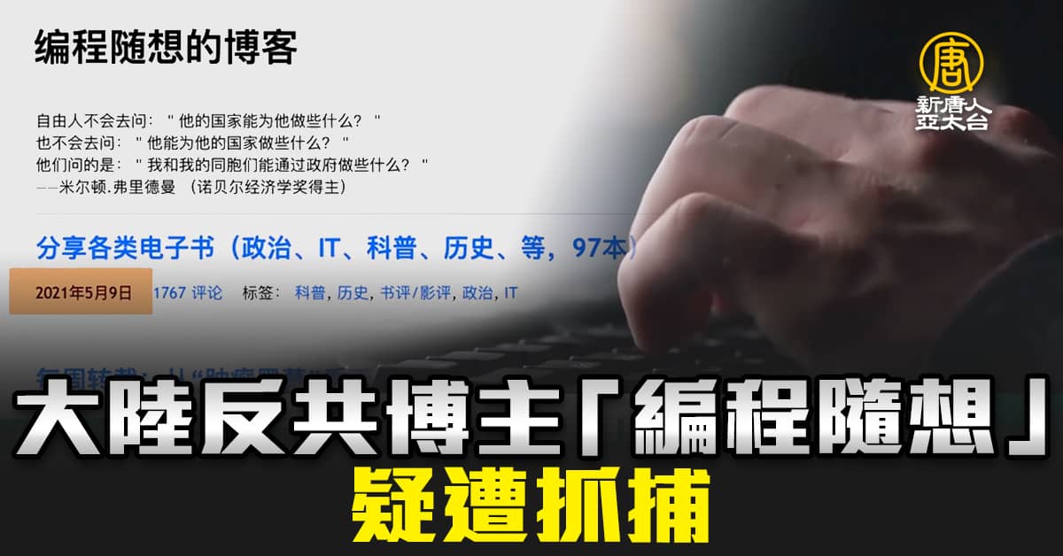 【新唐人亞太台 2021 年 06 月 16 日訊】以揭露中共腐敗、傳播翻牆技術和網絡安全知識的大陸知名博主「編程隨想」(Programthink),最近傳出遭到上海公安抓捕。