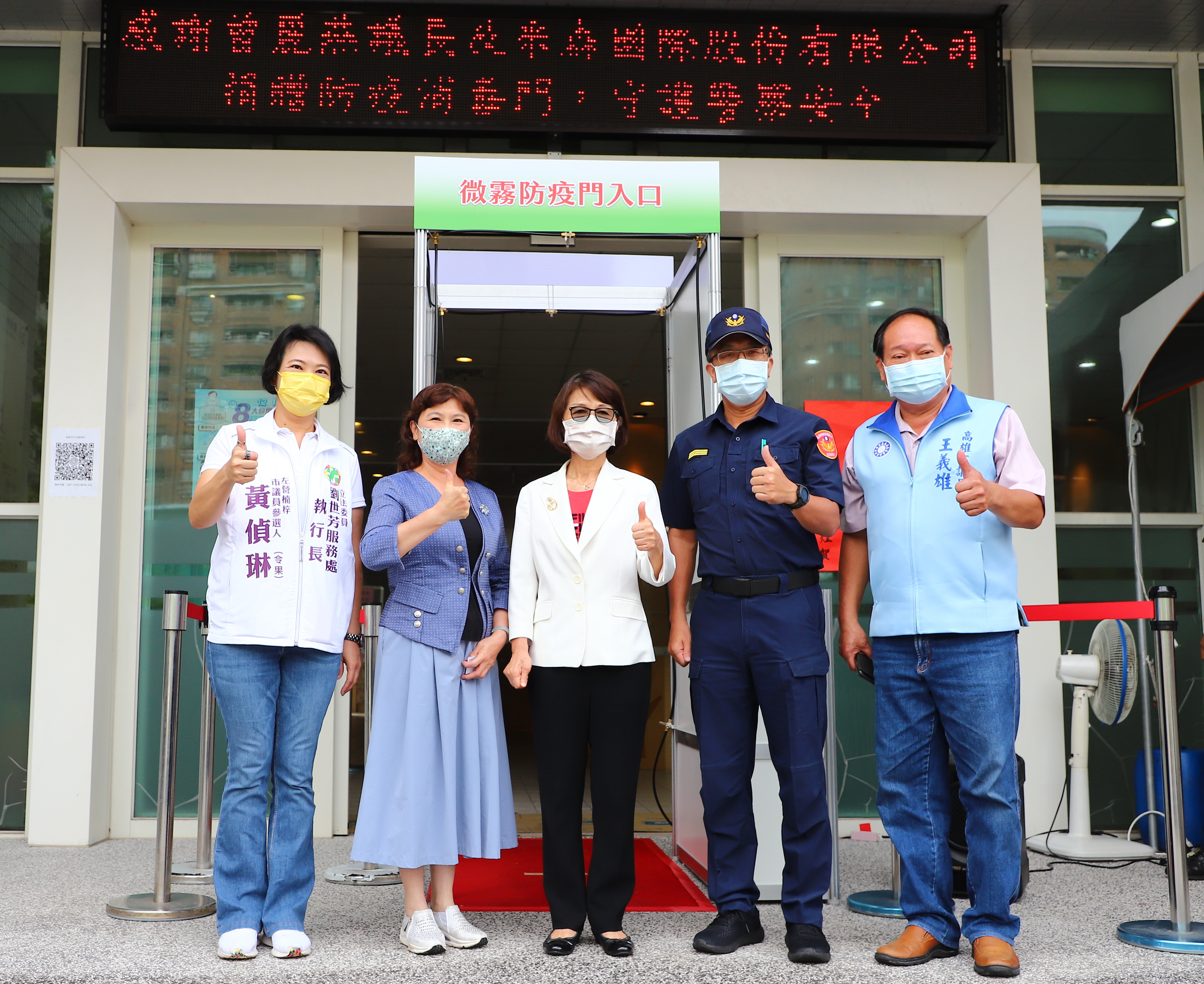 議長曾麗燕、議員王義雄及左營分局長陳世煌見證消毒門的啟用,並且進行體驗;曾麗燕表示,非常感謝民間企業捐贈時下最夯的消毒器材,包括移動式防疫噴霧消毒門及自動消毒測溫儀,展現民間力挺基層警員的用心。