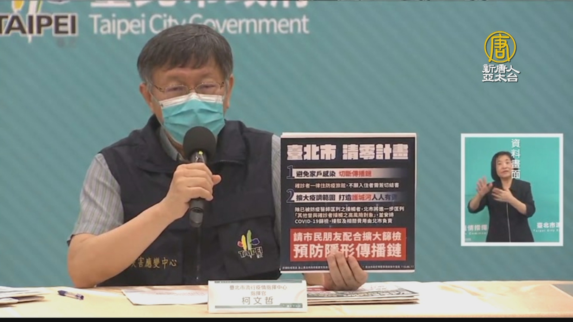 【新唐人亞太台 2021 年 06 月 17 日訊】台北市長柯文哲今天宣布,為了阻斷社區潛在傳播鏈,祭出2大戰略,要切斷感染源力拚+0,未來確診者將全數強制住院或加強版防疫旅館,周圍的可能感染者,也要強制進行篩檢。