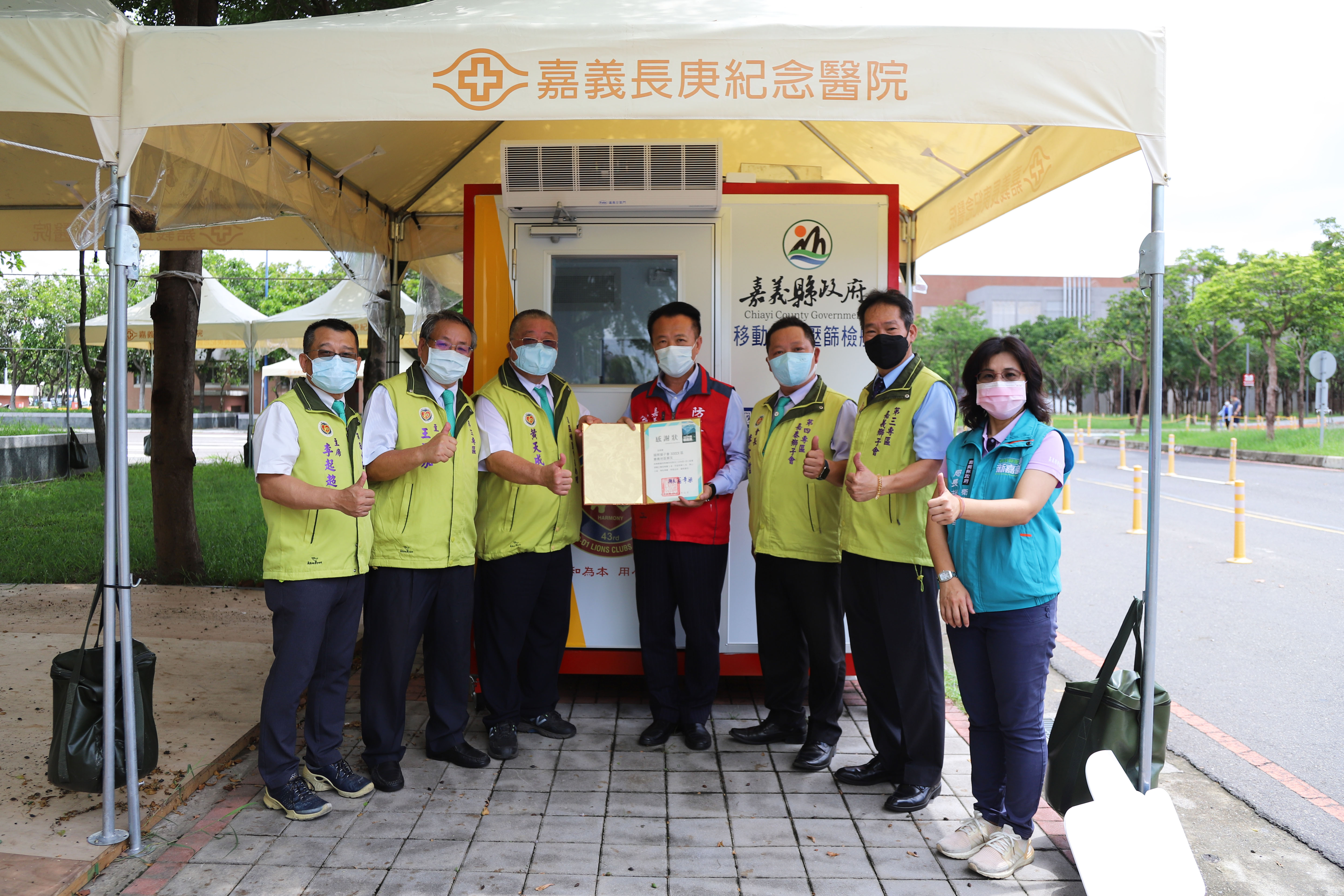 此外,國際獅子會300D1區嘉義地區獅友,也捐贈嘉義縣1座正負壓採檢艙及20多萬元防疫物資,獨立式正、負壓分艙分流設備,打造友善篩檢環境,建置在嘉義長庚醫院前篩檢站,翁縣長今天上午前往現場,感謝獅子會慷慨捐贈,造福醫護與篩檢民眾,齊心抗疫。