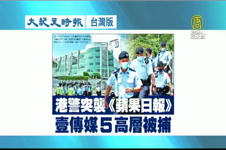 【新唐人亞太台 2021 年 06 月 18 日訊】繼續看到大紀元時報台灣版報導:港警突襲《蘋果日報》,壹傳媒5位高層被捕。