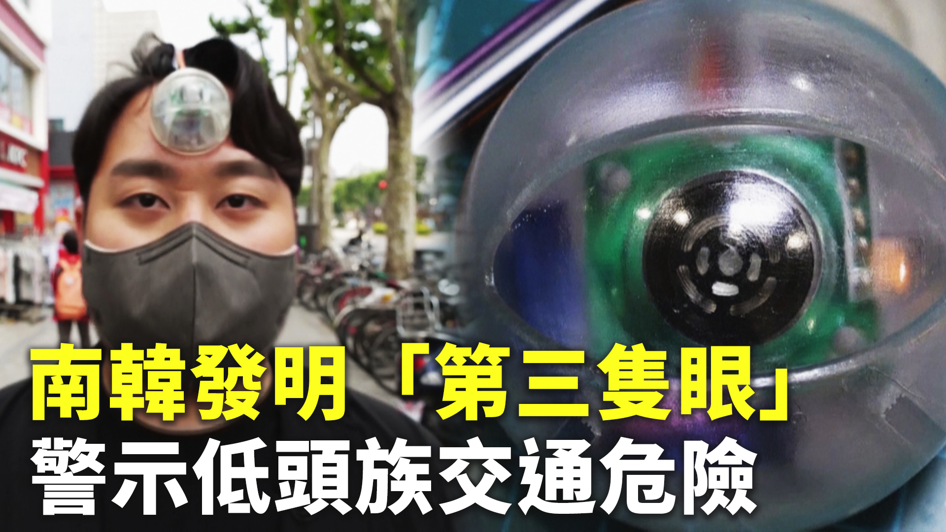 【新唐人亞太台 2021 年 06 月 18 日訊】現代人生活離不開手機,就連走路也放不下,不時低頭看手機,成了被控制的「手機殭屍」。一名南韓設計師發明一個戴在額頭上、看起來像眼睛的裝置,可提醒人們前方有障礙物。希望藉由這個帶有諷刺性的發明,警告人們手機成癮的問題。