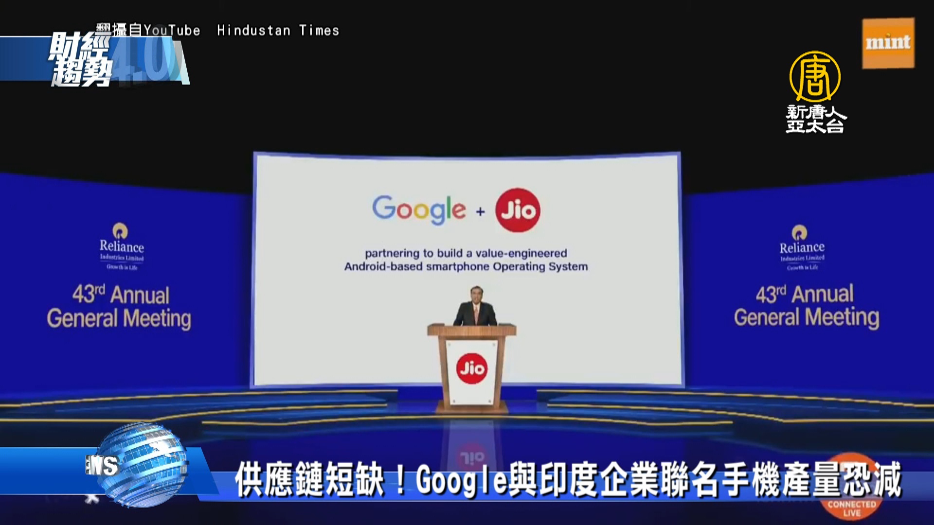 【新唐人亞太台 2021 年 06 月 19 日訊】去年7月,Google宣布以45億美元收購印度最大的電信公司Jio,雙方規劃合作打造一款安卓系統的平價智慧型手機。不過由於疫情關係,外媒報導指出,供應鏈短缺加上零組件價格大漲,雙方的製造計畫、手機的產量,恐怕將受影響。