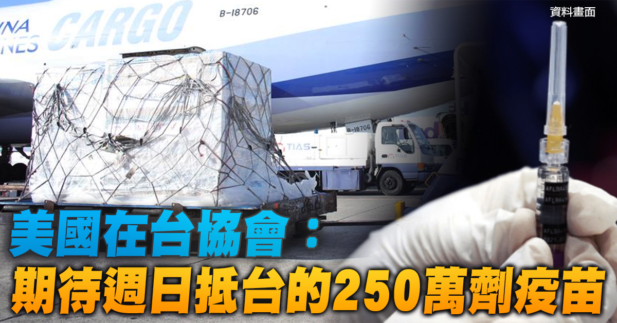 美國在台協會今晚近九點時發文,證實明天將會有250萬劑美國疫苗抵台,AIT寫到,期待明天即將抵台的250萬劑莫德納疫苗,此批疫苗由美國政府捐助,數量包含了6月6日美國參議員達克沃絲、蘇利文及昆斯訪台所宣布的75萬劑,並再加上額外捐贈的175萬劑,總計250萬劑疫苗。AIT強調,此批疫苗捐贈展現了美國對台灣的承諾,台灣是可信賴的朋友,也是國際民主大家庭的一份子。