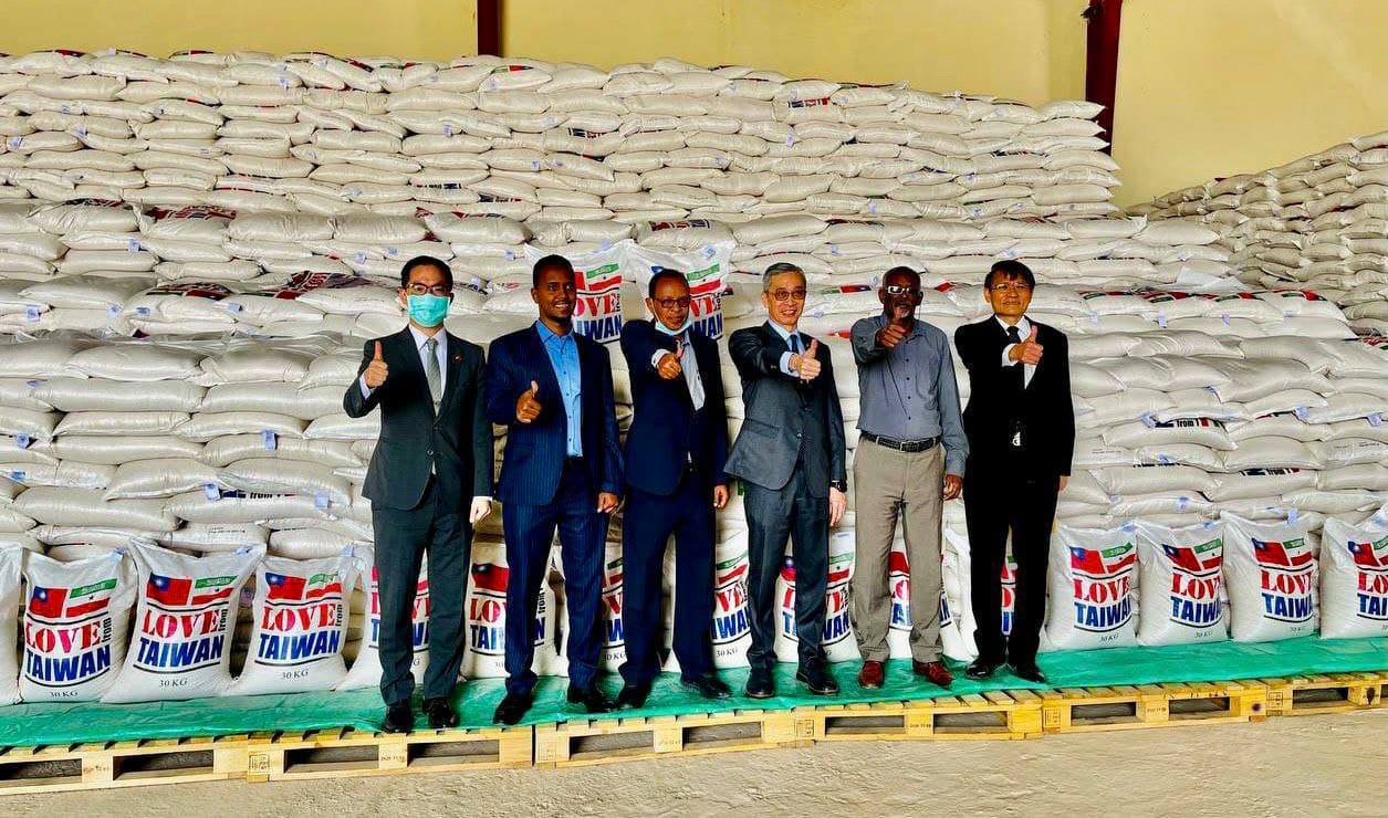 台灣駐索馬利蘭代表處20日將米袋印有「來自台灣的愛心」字樣的560噸白米贈予索馬利蘭政府。(圖由駐索馬利蘭代表處提供)