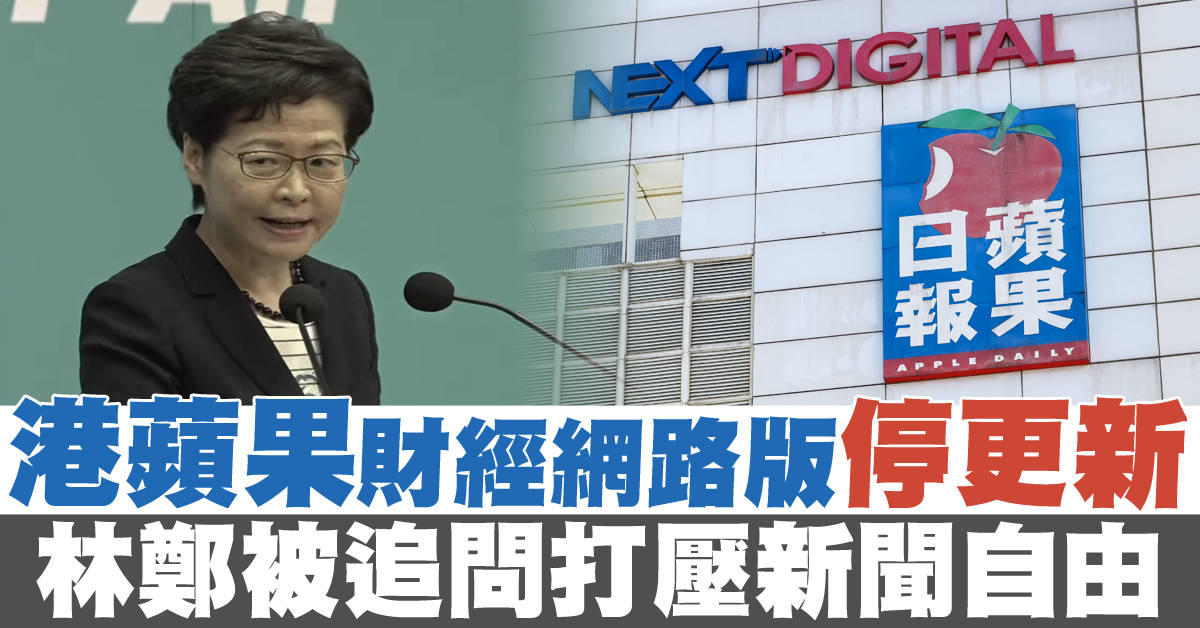 港蘋果財經網路版停更新 林鄭被追問打壓新聞自由