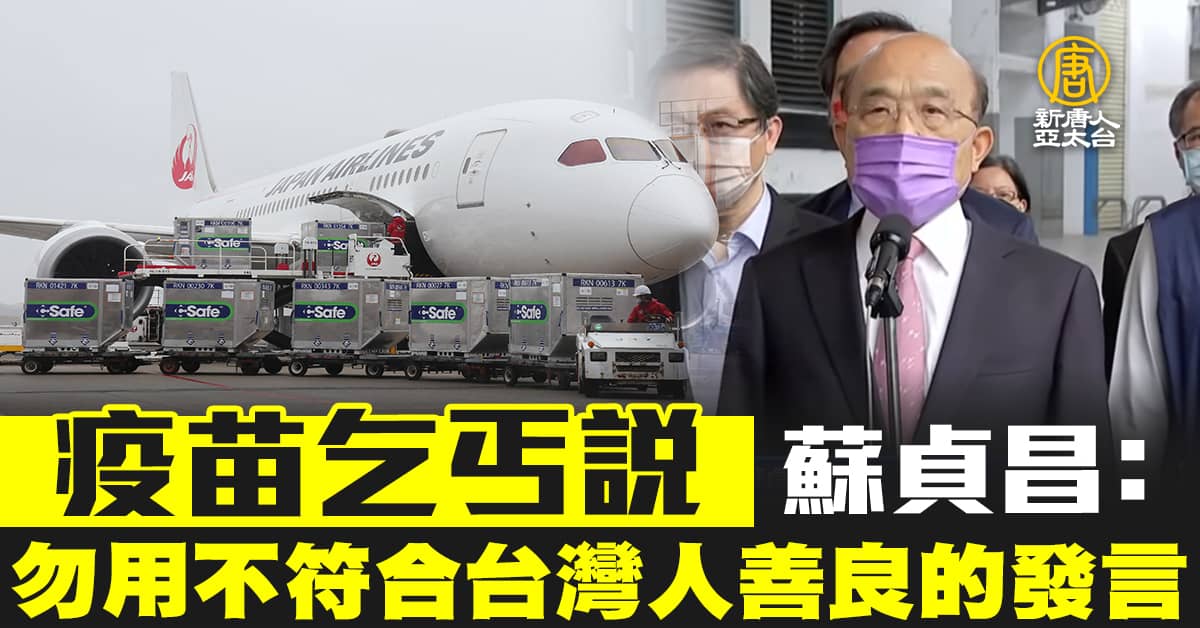 【新唐人亞太台 2021 年 06 月 22 日訊】美國跟日本捐助台灣疫苗,在野黨痛批政府疫苗政策錯誤,淪為疫苗乞丐,國民黨主席江啟臣也批評蔡政府,沒有就政策錯誤負責,卻拿外交疫苗當宣傳,認為蔡英文沒資格再講話。行政院長蘇貞昌今天受訪認為這是極少數人的仇恨語言。
