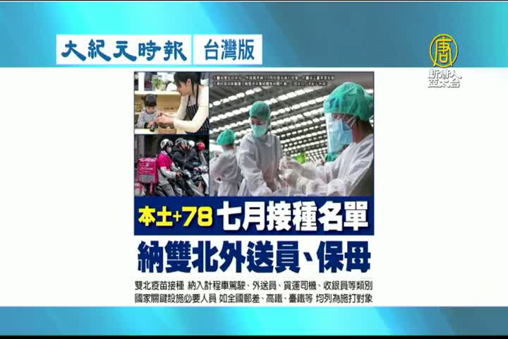 【新唐人亞太台 2021 年 06 月 23 日訊】繼續看到大紀元時報台灣版報導:本土確診個案新增78例,台灣疫情指揮中心公布七月疫苗接種名單,納入雙北外送員、保母等。