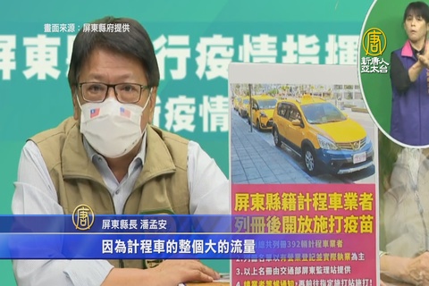屏東縣長 潘孟安:「也因為計程車大的流量,我們特別針對監理站,所造冊的給屏東縣政府392台,計程車的業者,都可以來優先,持營業登記證,來優先施打。」
