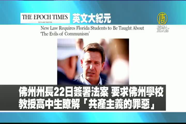 【新唐人亞太台 2021 年 06 月 24 日訊】首先來看到美國大紀元英文版報導:佛州州長22日簽署法案,要求佛州學校的教授跟高中生瞭解「共產主義的罪惡」。