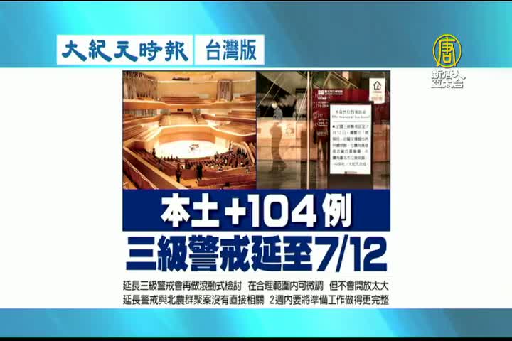【新唐人亞太台 2021 年 06 月 24 日訊】繼續看到大紀元時報台灣版報導:本土個案新增104例,台灣三級警戒延至7月12日。