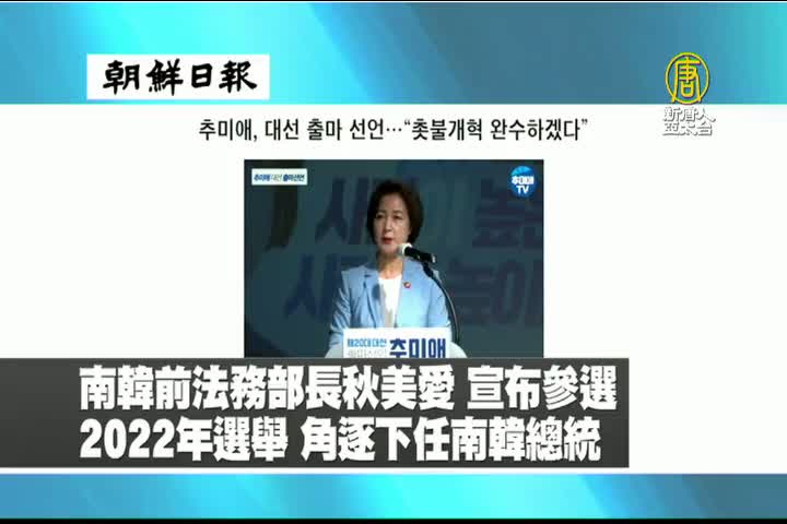 【新唐人亞太台 2021 年 06 月 24 日訊】來看到韓國朝鮮日報報導:南韓前法務部長秋美愛,宣布參選2022年選舉,角逐下任南韓總統。