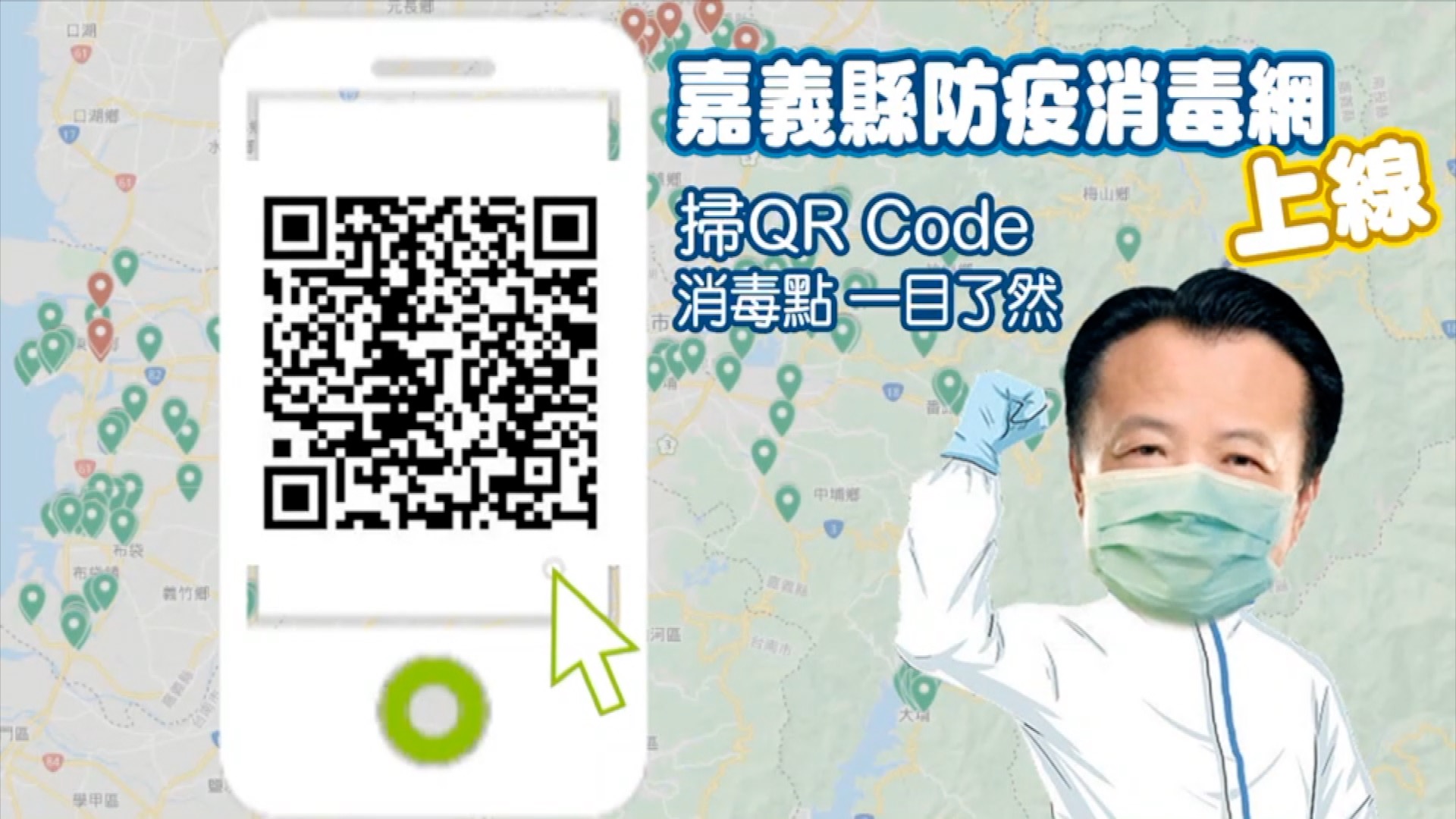 嘉義縣長 翁章梁:「嘉義縣防疫消毒網,上線啦!關心防疫消毒的民眾,掃QR Code就可以看到了囉!」