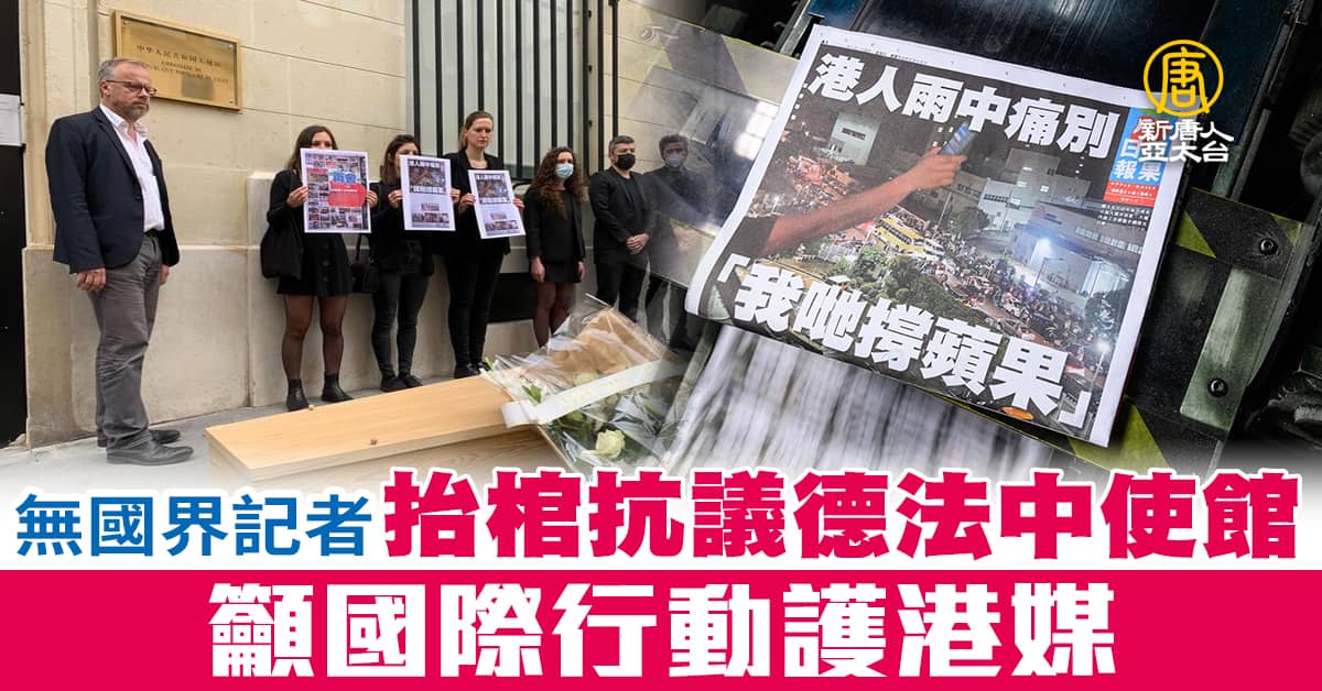 「無國界記者」抬棺抗議德法中使館 籲國際行動護港媒