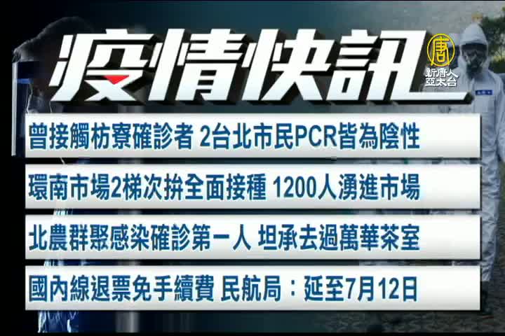 【新唐人亞太台 2021 年 06 月 28 日訊】再來關注,台灣本土疫情最新動態,曾接觸枋寮確診者 2台北市民PCR皆為陰性。環南市場2梯次拚全面接種 ,1200人湧進市場。北農群聚感染確診第一人,坦承去過萬華茶室。國內線退票免手續費,民航局表示:延至7月12日。