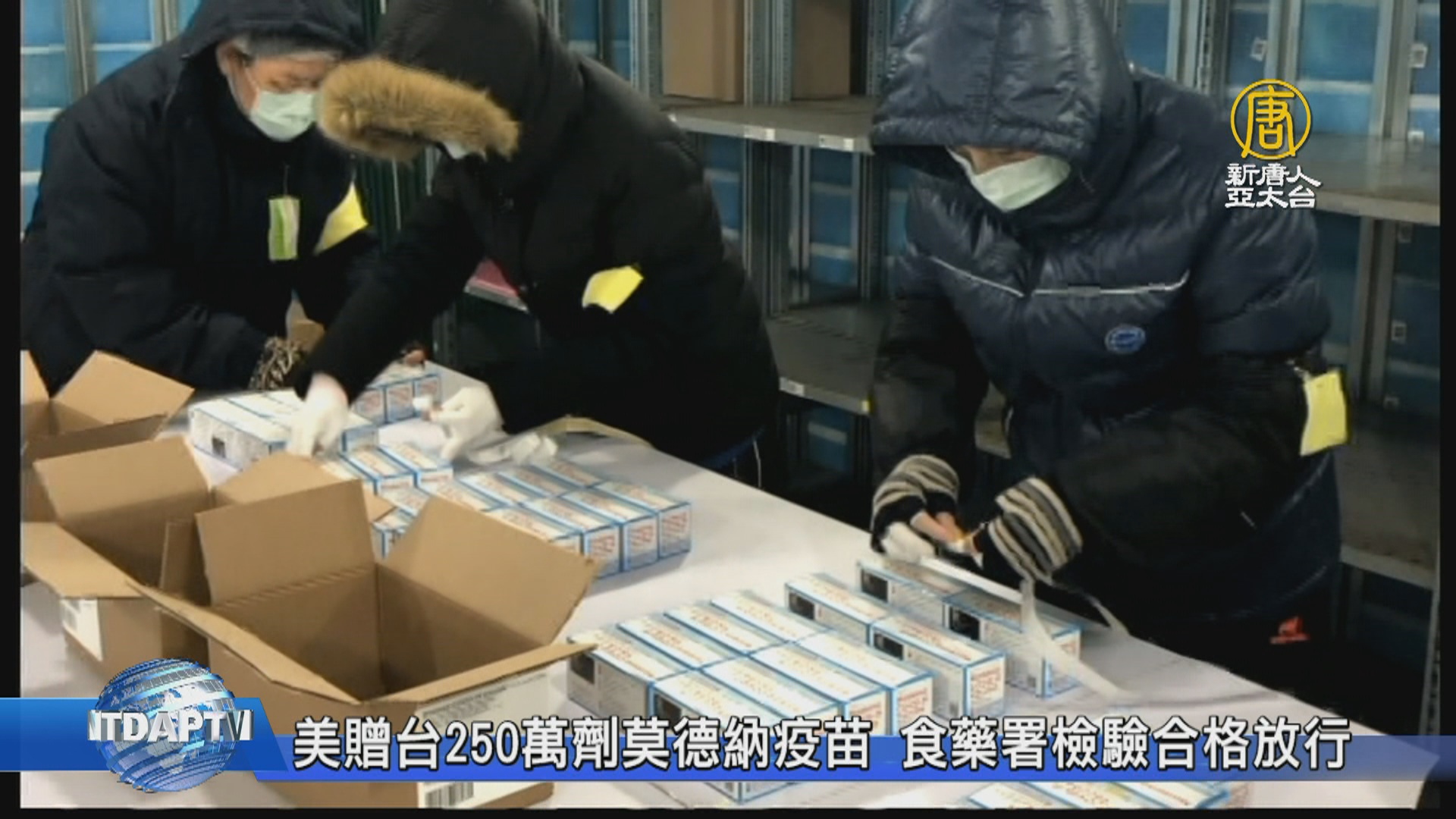 【新唐人亞太台 2021 年 06 月 28 日訊】歡迎回來,美國贈送250萬劑莫德納疫苗,經食藥署檢驗合格後,今天下午封緘放行,行政院長蘇貞昌前往視察,也觀看冷鏈倉儲情況。看到工作人員要在零下環境,不戴手套工作後,蘇揆也對民眾喊話,希望國人能珍惜得來不易的疫苗,可以打的時候盡快打。