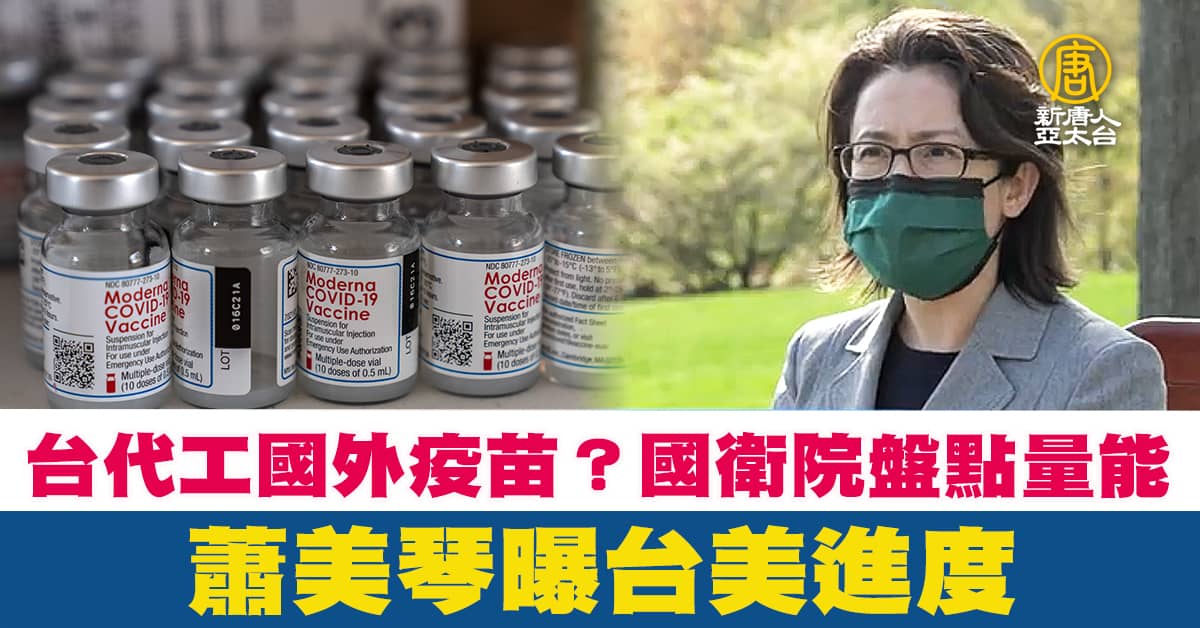 【新唐人亞太台 2021 年 06 月 29 日訊】台灣採購的國外疫苗陸續抵台,也有消息傳出,國衛院將與莫德納簽約,取得mRNA疫苗量產授權。對此,國衛院表示,目前正在了解台灣的量產能量,外交人員也非常努力扮演牽線的角色。台灣駐美代表蕭美琴也表示,台灣爭取美國疫苗製造技術,可透過雙邊平台,進一步凝聚共識。