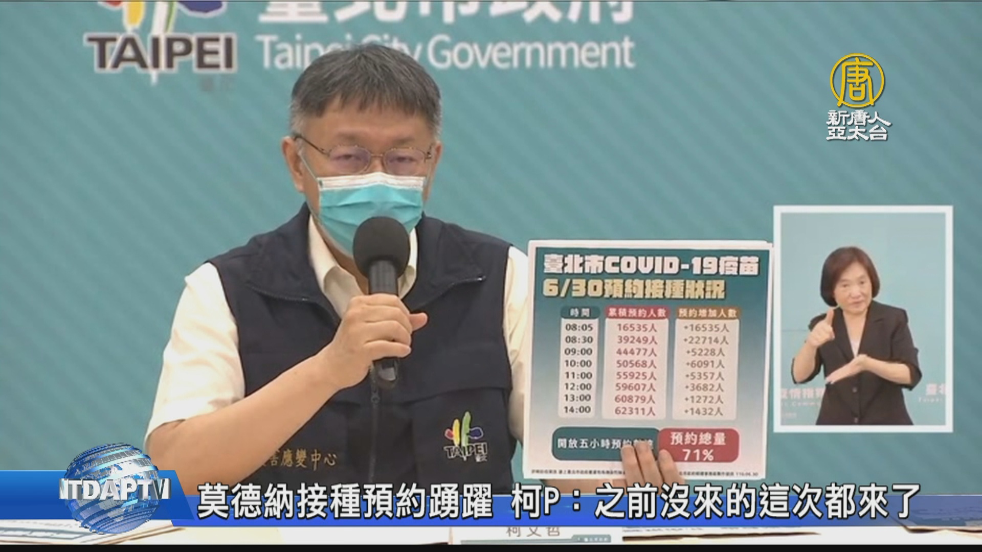 【新唐人亞太台 2021 年 06 月 30 日訊】美國送來的這批250萬劑莫德納,雙北都在今天開放給,居住在當地的72歲以上長者,和55歲以上原住民上網預約施打,民眾踴躍響應,北市在5分鐘內就有超過1萬5千名長者完成預約,而新北則出現系統大塞車,一度在半小時內湧入上百萬流量。