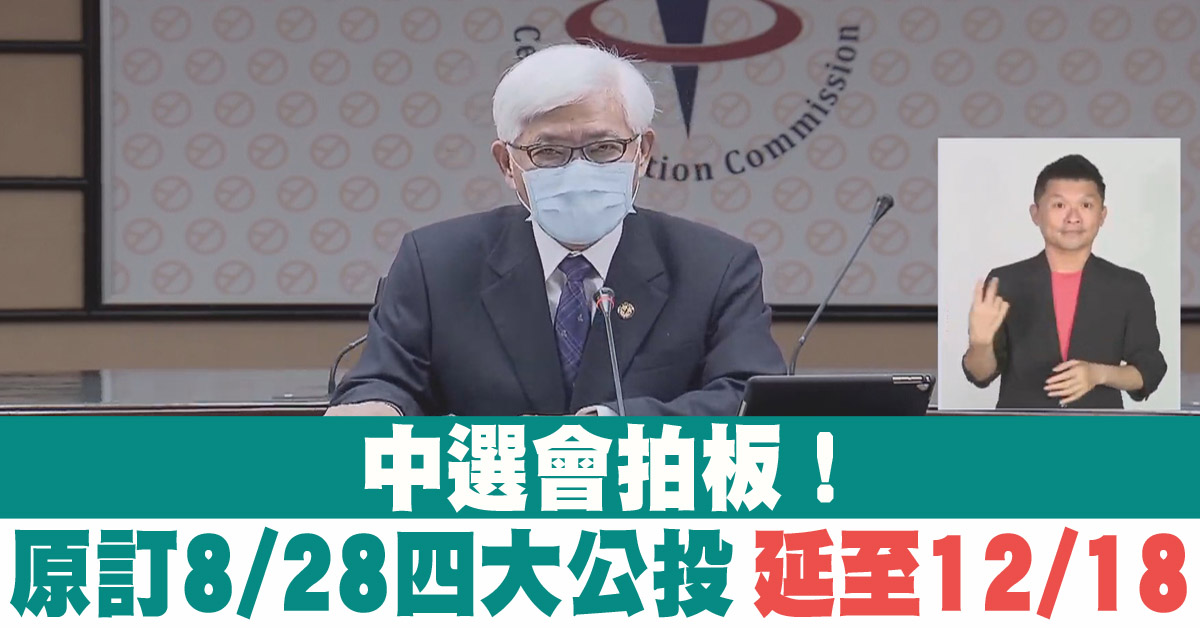 中選會決議延後公投日期到12月18號,考量避免投票人潮群聚,造成疫情爆發,而選務人員未排入優先注射疫苗,恐引發辭退潮,另外投票場地洽借困難,投票前無法舉辦大型選務人員講座,因此延後投票時間。