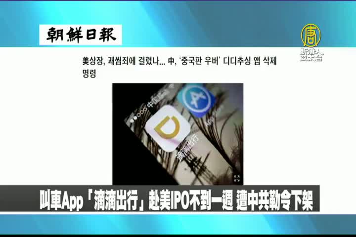【新唐人亞太台 2021 年 07 月 05 日訊】來看到韓國朝鮮日報報導:叫車App「滴滴出行」6月29日在美股「上市」,不到一週後,遭中共勒令下架。