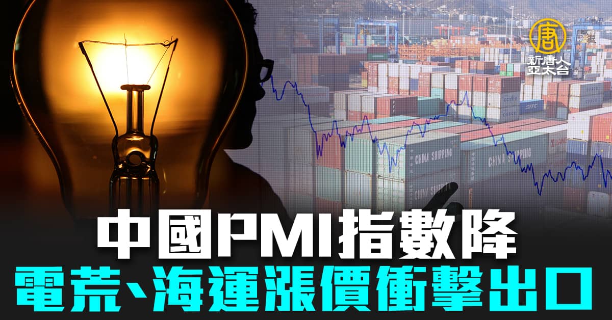中國PMI指數降 電荒、海運漲價衝擊出口