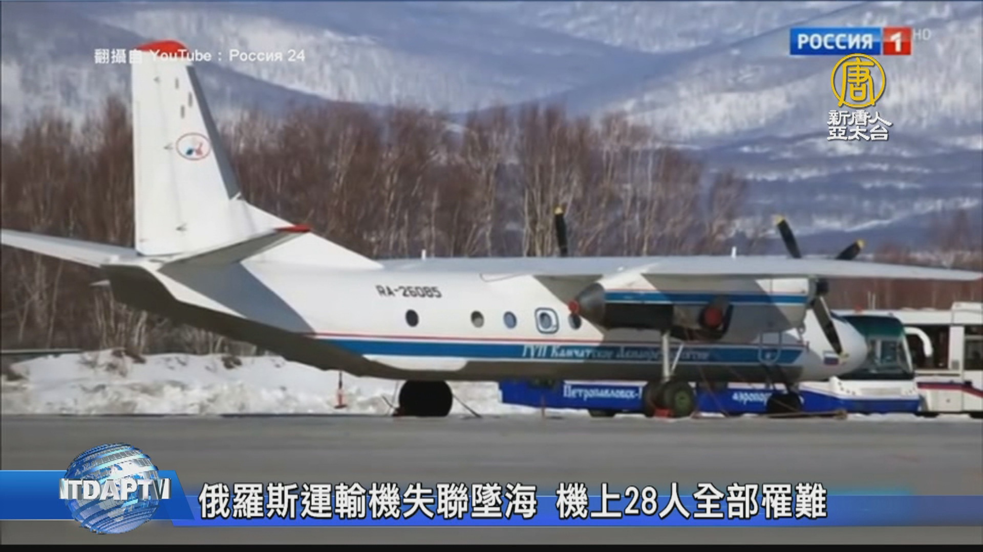 【新唐人亞太台 2021 年 07 月 06 日訊】歡迎回來,國際消息帶您關心,俄羅斯1架載有28人的安托諾夫運輸機(AN-26),今天(6日)傳出在遠東地區的堪察加半島上空失聯,當地官方證實了這班班客機墜海,目前收到的最新消息是,已經發現墜機殘骸,機上沒有任何人生還。