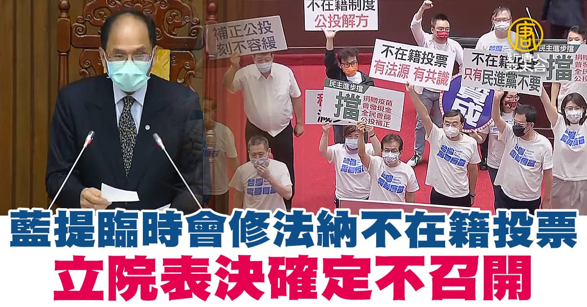 【新唐人亞太台 2021 年 07 月 07 日訊】針對國民黨團建請召開臨時會,討論公投不在籍投票,立法院今天上午召開談話會,因為民進黨團反對,經表決後,否決召開臨時會。國民黨團批評民進黨害怕公投,而民進黨團質疑,國民黨意圖推動通訊投票,但這將違反憲法秘密投票原則,與境外投票遭干擾的疑慮。