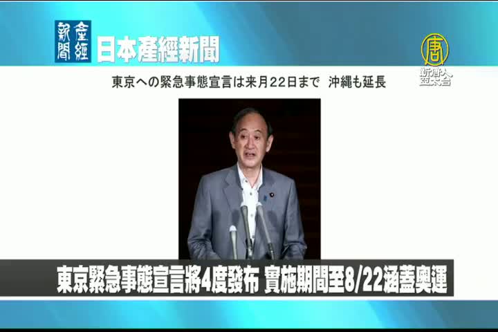 【新唐人亞太台 2021 年 07 月 08 日訊】來看到日本產經新聞報導:日本東京緊急事態宣言將4度發布,實施期間至8/22涵蓋奧運。