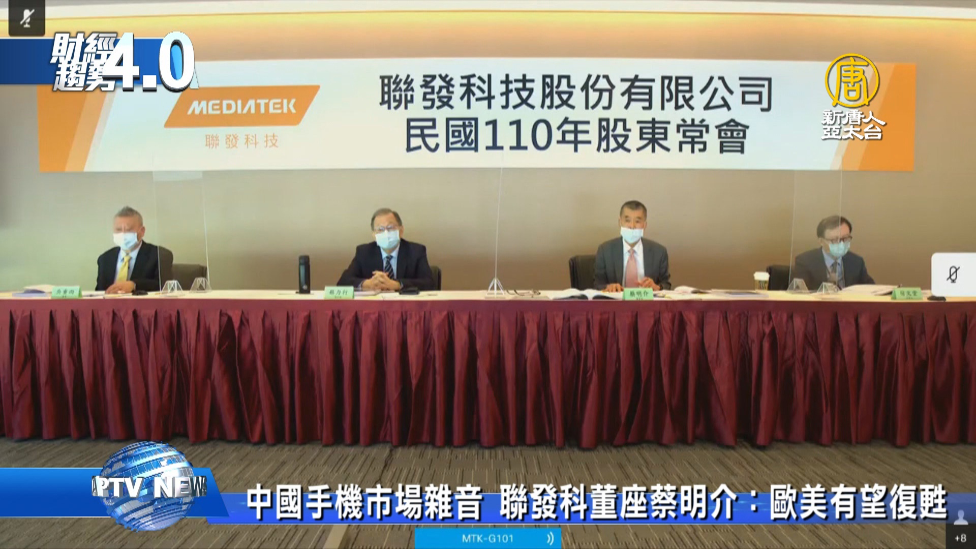 【新唐人亞太台 2021 年 07 月 10 日訊】台灣IC設計龍頭聯發科,在本週舉辦線上股東會,對於外界擔心,手機銷售出現雜音,聯發科董事長蔡明介首度回應,他說:5G循環正要開始,公司產品布局多元,看好今年明年的 營運展望。