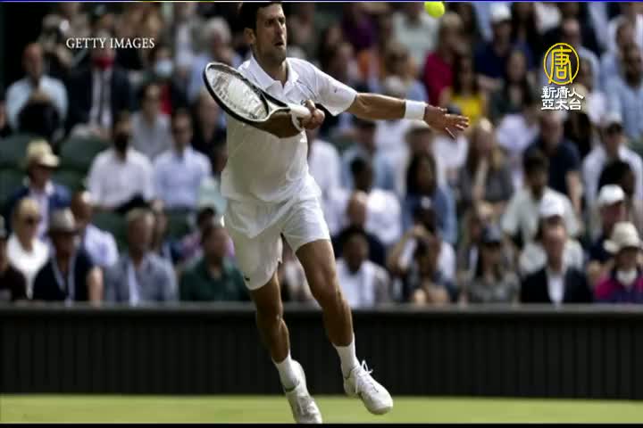 【新唐人亞太台 2021 年 07 月 12 日訊】溫布頓網球公開賽男單決賽,世界球王喬科維奇以6比7,6比4,6比4和6比3,總盤數3比1的成績,擊敗義大利好手「貝雷蒂尼」,拿下生涯第6座溫布頓冠軍。喬科維奇同時也追平費德勒和納達爾,共同保持的生涯20座大滿貫冠軍紀錄,成為史上第3人,同時是52年來首位單季連3冠的選手。
