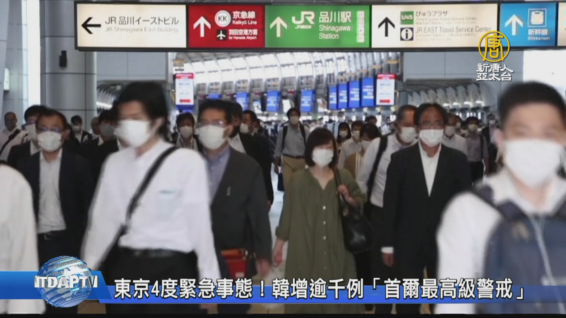 【新唐人亞太台 2021 年 07 月 12 日訊】全球疫情升溫,日本東京週一開始執行第四次的緊急事態宣言,涵蓋整個東奧賽程。而連六天破千例的南韓,也宣布針對首都圈施行最嚴格的第4級防疫措施。澳洲大城雪梨雖然已封城三週,不過受Delta變種病毒侵襲,病例數仍降不下來,解封時間恐將再延長。