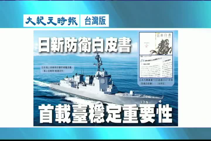 【新唐人亞太台 2021 年 07 月 14 日訊】繼續看到大紀元時報台灣版報導:日本新防衛白皮書,首次載入臺灣穩定重要性。